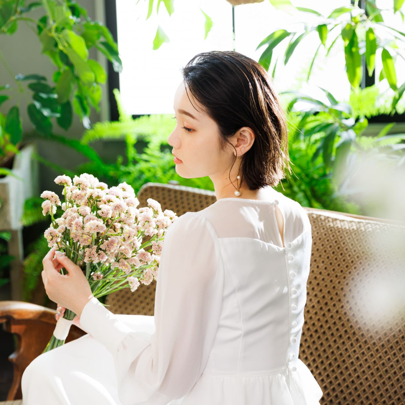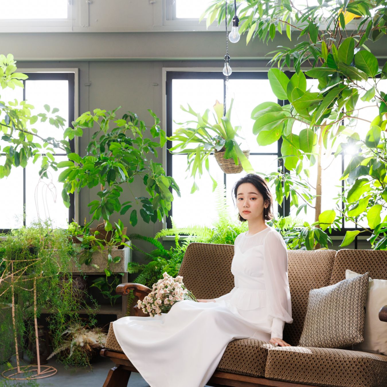 本物の植物をセットに仕立てた背景セット。自然光×グリーンの組み合わせが写真をリッチに演出します。