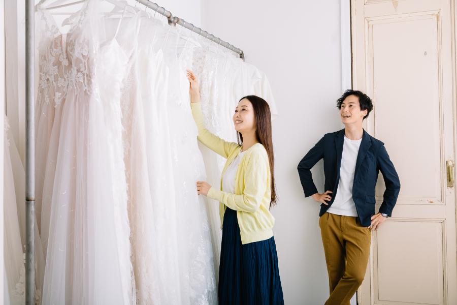 シンプルながらこだわりの詰まったドレスを多数ご用意しております。ドレス・タキシード選びや試着を心ゆくまでお楽しみください。
