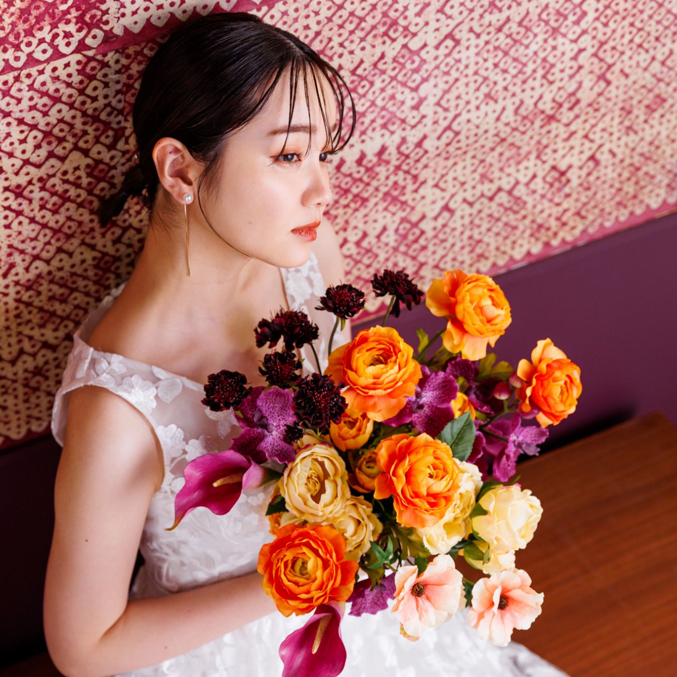 色彩鮮やかな花々をふんだんに使ったブーケ